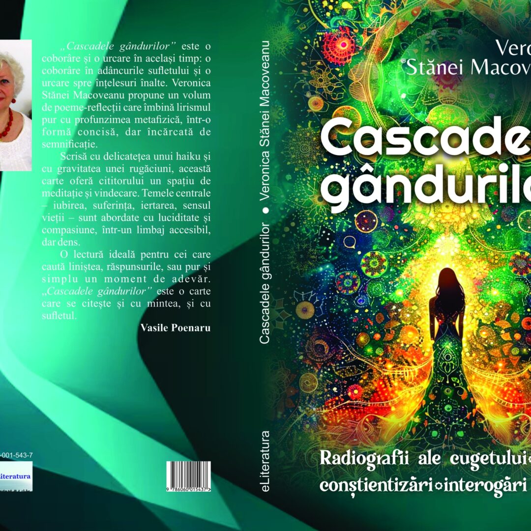 „Cascadele gândurilor” este o coborâre și o urcare în același timp: o coborâre în adâncurile sufletului și o urcare spre înțelesuri înalte. Veronica Stănei Macoveanu propune un volum de poeme-reflecții care îmbină lirismul pur cu profunzimea metafizică, într-o formă concisă, dar încărcată de semnificație.